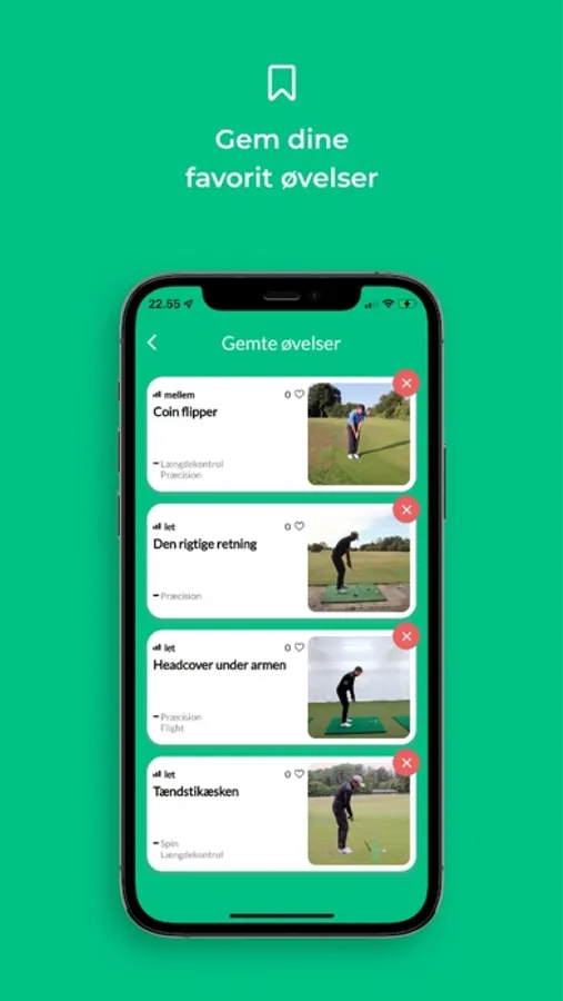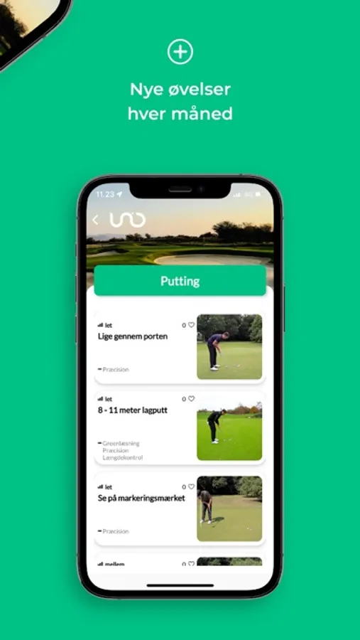 Flere af øvelserne kan laves hjemme i stuen, samt på golfbanen, og der vil komme nye øvelser ind på appen hver måned. Vores mission er at hjælpe til du opnår endnu større glæde ved spillet.