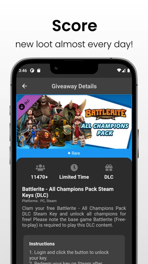 - Access instantly the best giveaways in gaming directly from the official developers and publishers
