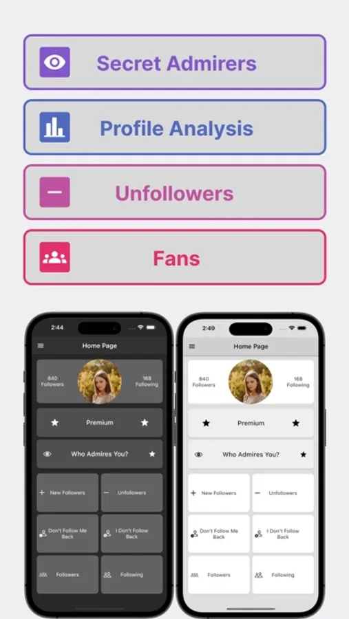 Get Ins Reports Premium to instantly see gained and lost followers and keep your profile under control.
