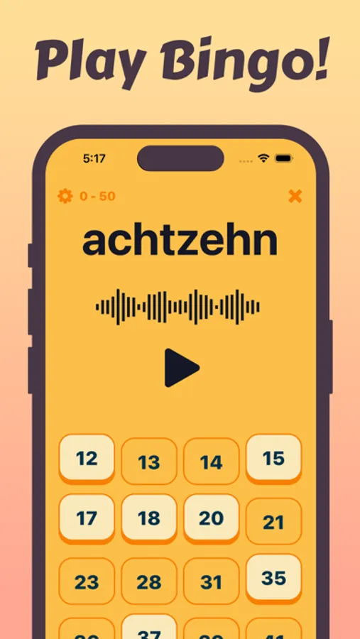 BINGO - listen as each number is called out and tap the right number on your bingo card