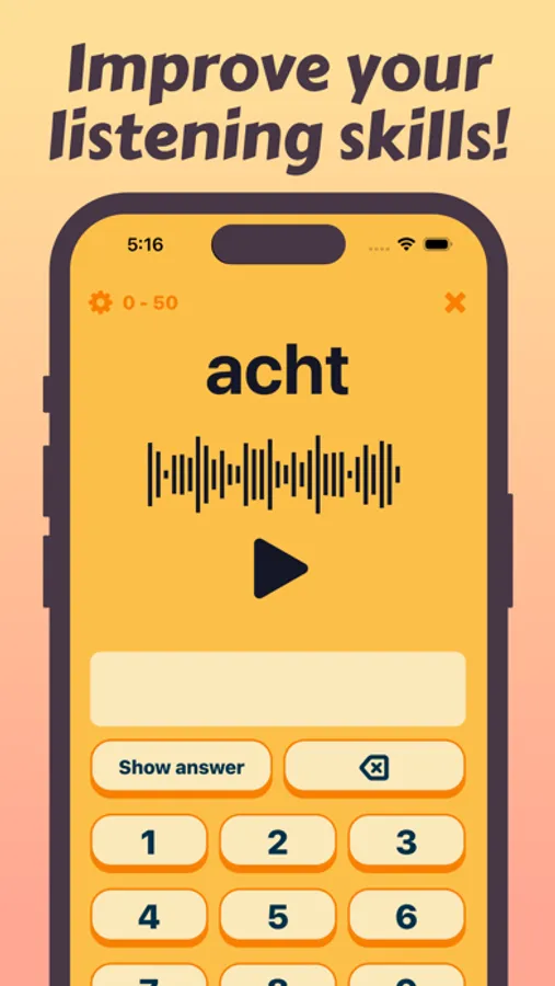 LISTENING - the app will say a number in English to you and it's your job to type it in