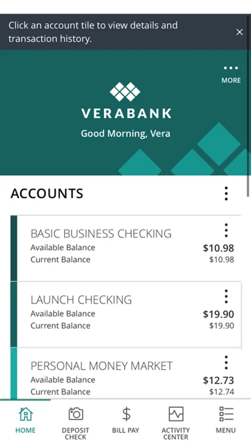 · View your VeraBank and non-VeraBank accounts all in one place