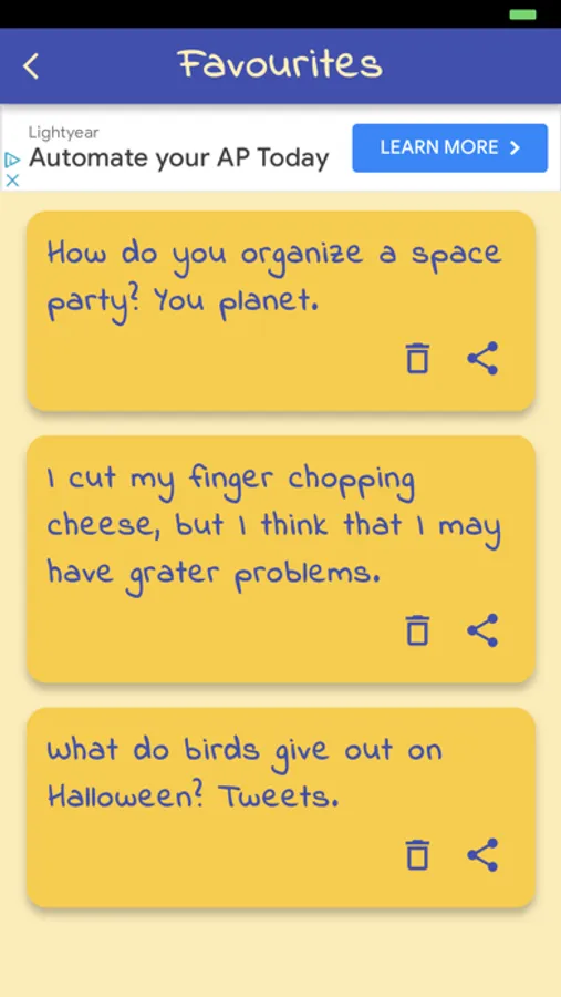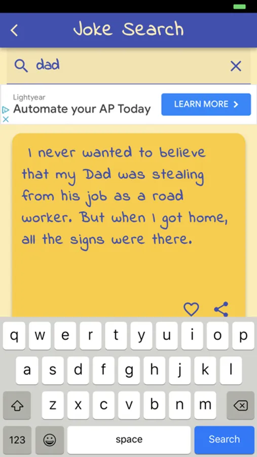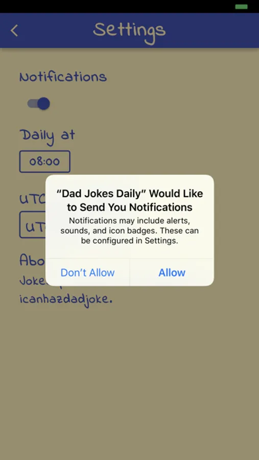 The Dad Jokes Daily app lets you get jokes at the push of a button. You can search for jokes, mark your favourites to refer to them later, share them with your friends, submit your own jokes, and receive a joke notification to your phone each day at a time that suits you.