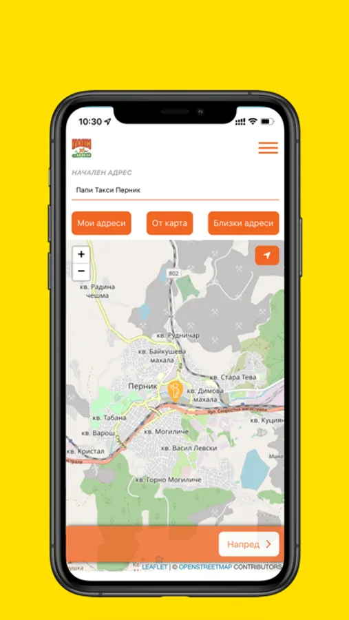 Мобилно приложение за поръчка на Papi&Joy Тaxi за гр. Перник. При повикване на такси приложението автоматично локализира къде се намирате, като има и опция за въвеждане на конкретен адрес, на който таксито да пристигне.