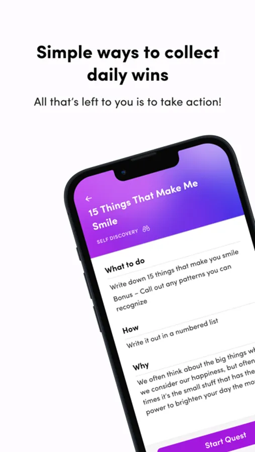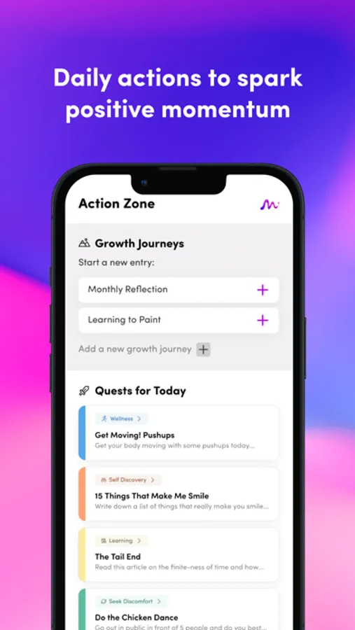 – Receive 4 quests every 24 hours with small, unique actions you can take to grow today.