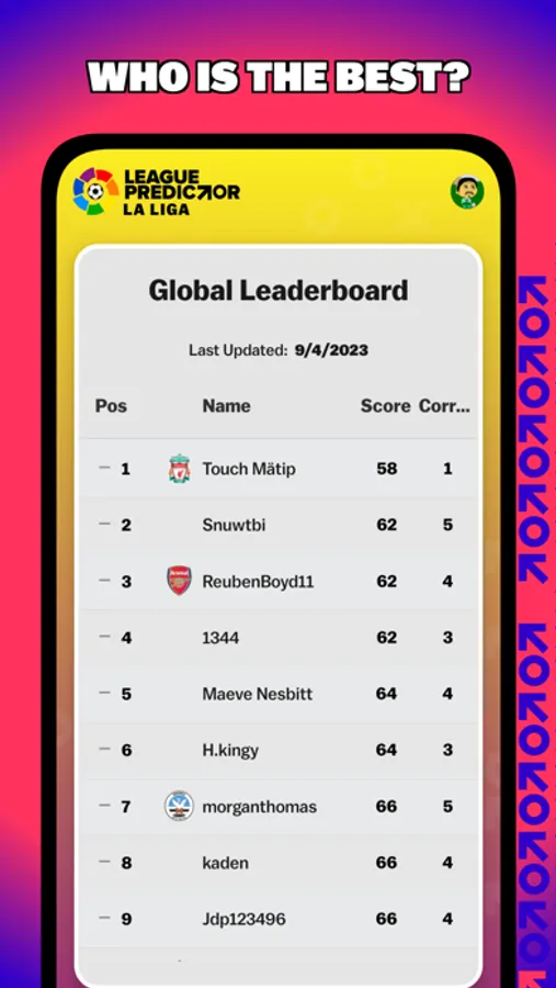 Dive into the thrilling world of sports predictions with our game, inspired by the nostalgic days of making predictions with friends at school. Whether you're a casual fan or a sports enthusiast, this simple yet addictive game is your chance to conquer leagues from around the globe!