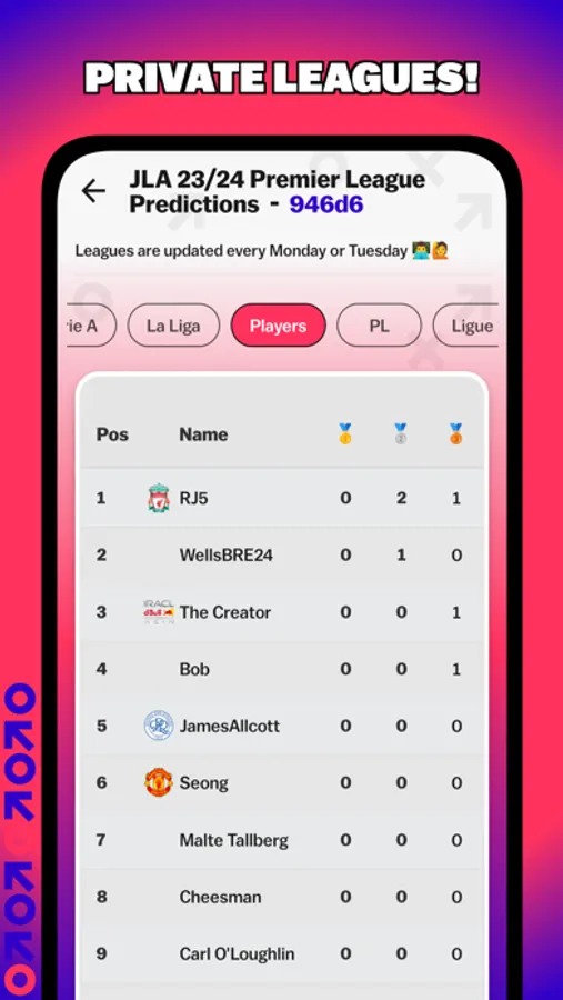 • Medal Table: Compete in our Olympic-style Medal Table, where trophies decide the ultimate League Predictor champion!