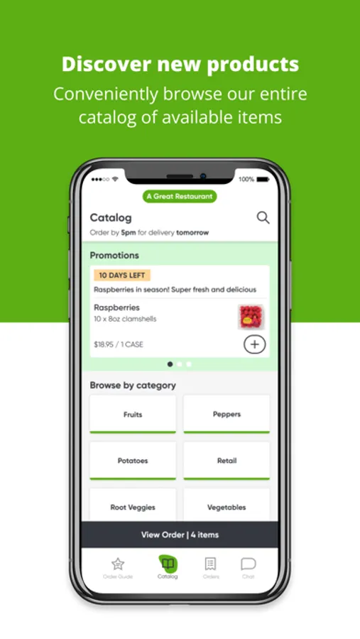 - Keep everything together: delivery days, cutoff times, order updates, and promotions all in one - place