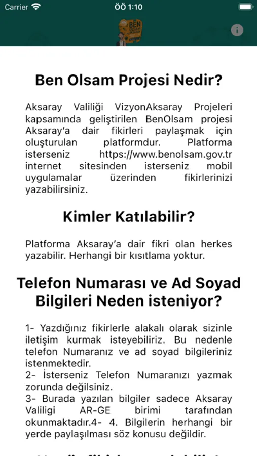 Aksaray Valiliği Ben Olsam Projesi için Fikirlerinizi yazabilirsiniz.