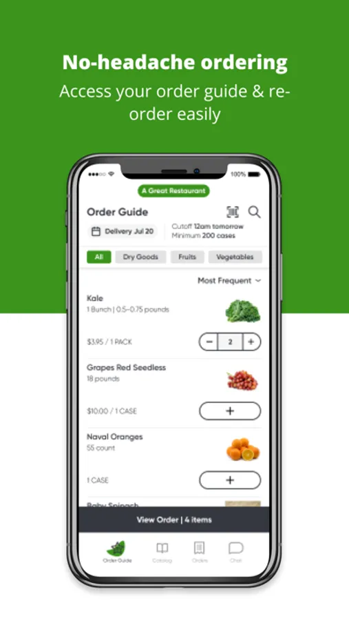 Our mobile app lets you search our complete product catalog, manage and update your ordering guide, and buy what you need at the moment you need it. It’s part of our commitment to giving you an ordering experience you’ll love.