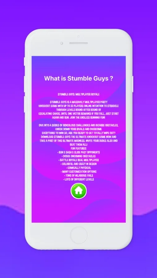 Please keep in mind our app "Gems Mod stumble-guys" doesn’t provide any Stumble Guys: Multiplayer Royale free gems and please don't expect to earn Stumble Guys free gems from this app.