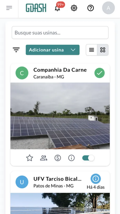 Solução desenvolvida para ajudar empresas do setor de energias renováveis a aumentar a produtividade e eficiência das equipes que acompanham a operação dos ativos, melhorando o índice de satisfação dos clientes. A integração com diversos portais de monitoramento de inversores permite um monitoramento centralizado da operação de todo o portfólio de ativos assim como a gestão das atividades de manutenção. O app possibilita realizar a auditoria das faturas de energia junto as concessionárias. O envio automático de relatórios mensais com dados de geração e economia é um recurso que visa aumentar a produtividade e eficiência das equipes que acompanham as usinas, melhorando o índice de satisfação dos clientes.