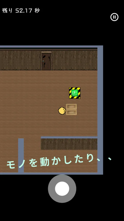 さまざまな仕掛けをを解きながら、1分以内に脱出するゲームとなっています。
