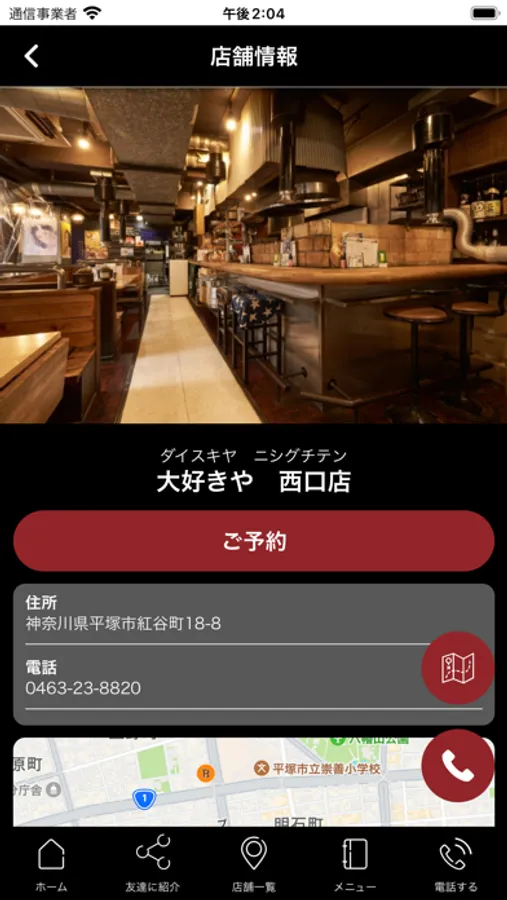 タップすると店舗選択画面になりますので、該当の店舗をタップしてお電話ください。