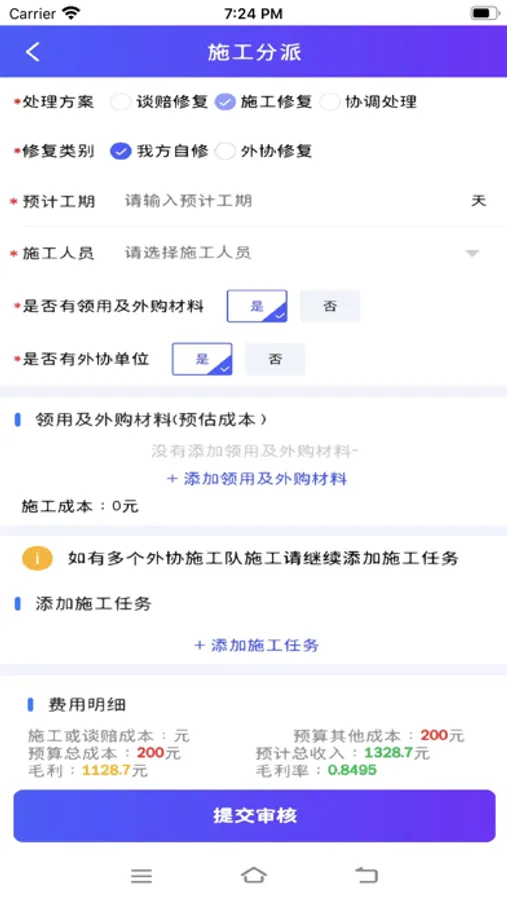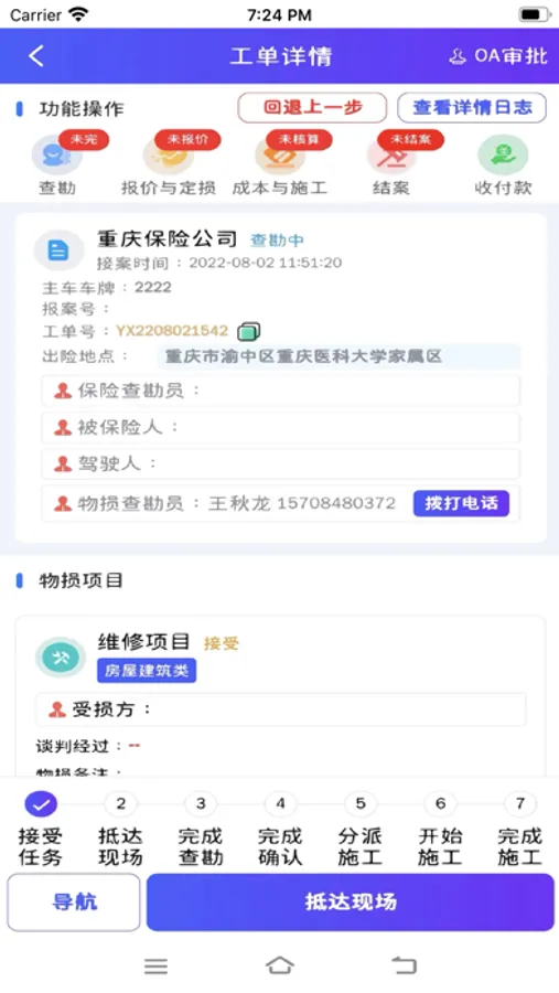 壹修物损是用于物损修复公司及其管理人员管理其业务的工具,主要功能为创建工单,分派业务工单,对应角色人员执行业务任务,并提交相应审核和查询业务内容的应用。
