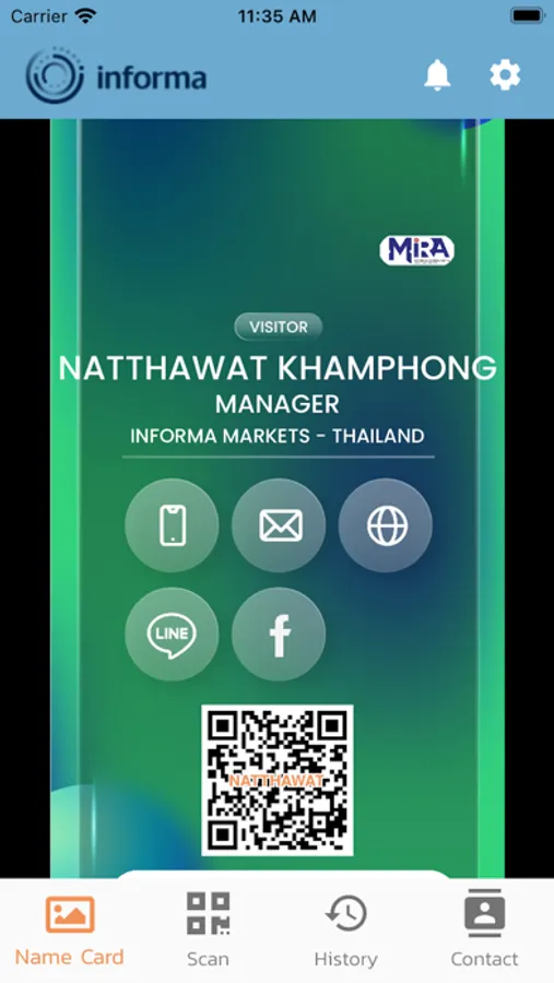 Contactless Solution App for events organized by Informa Markets in Thailand to facilitate visitors with digital name cards and connectivities.