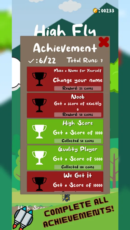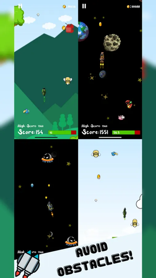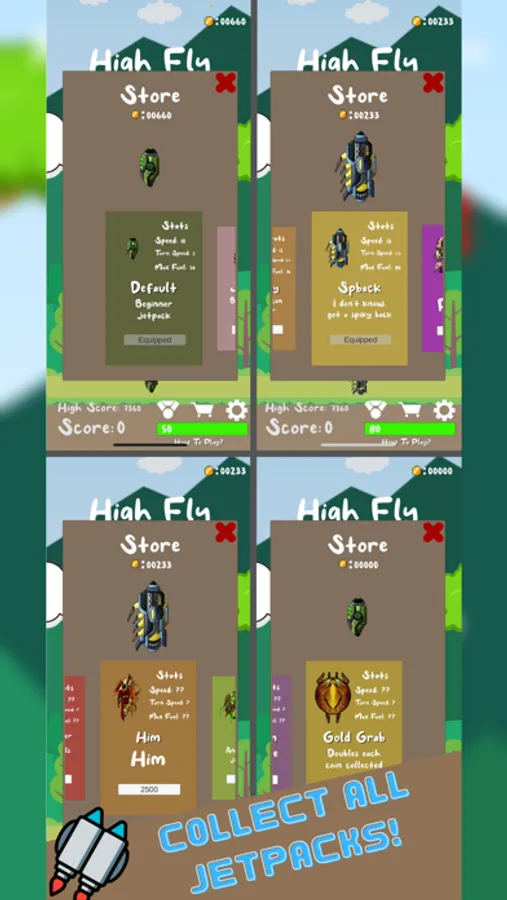 High Fly is a high flying infinite runner adventure game. Try to get as high as you can while avoiding obstacles and making sure not to run out of fuel! Compete against friends and other players on the online leaderboard to attempt to get the top spot! Also complete achievements and collect new jetpacks that help you go further! Good Luck!