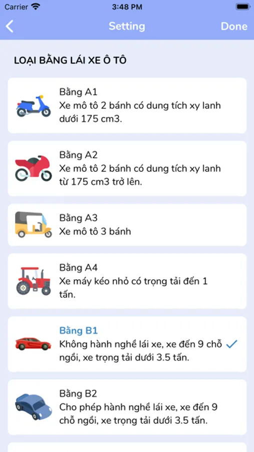 Ứng dụng đơn giản và đầy đủ các chức năng giúp bạn ôn luyện thi cấp Giấy phép lái xe ô tô/mô tô một cách đầy đủ và hiệu quả.