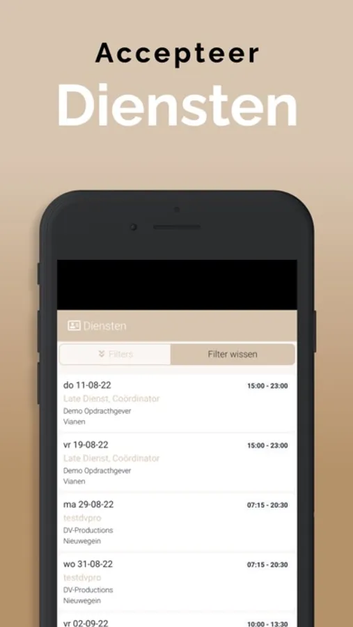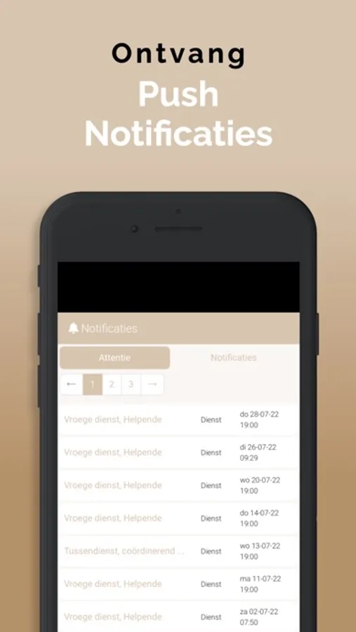 Relevante informatie komt via een push melding binnen op jouw app zodat je altijd up to date bent van de laatste informatie voor wat betreft de diensten. Ook wijzigingen worden direct zichtbaar in de agenda waardoor je altijd op de juiste plaats op het juiste moment aanwezig bent.