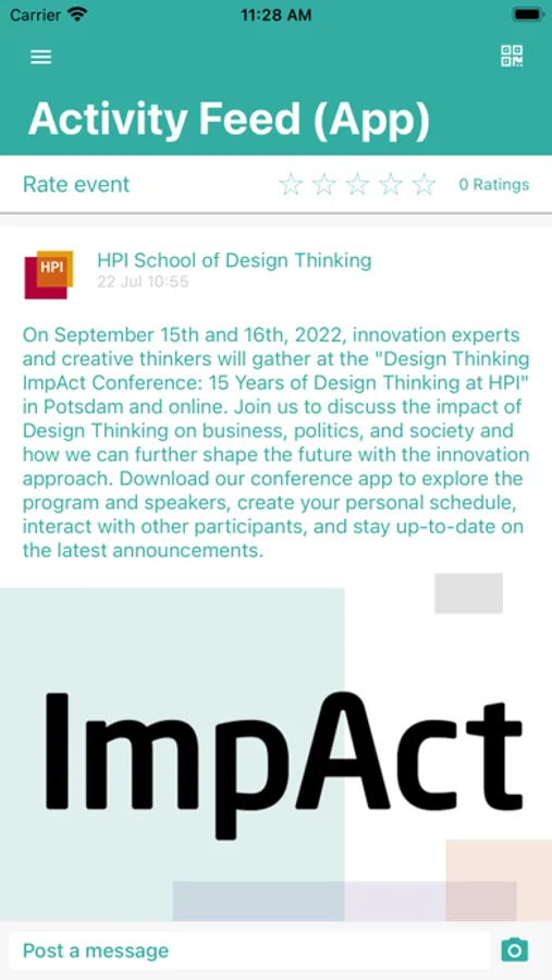 On September 15th and 16th, 2022, innovation experts and creative thinkers will gather at the "Design Thinking ImpAct Conference: 15 Years of Design Thinking at HPI" in Potsdam and online. Join us to discuss the impact of Design Thinking on business, politics, and society and how we can further shape the future with the innovation approach. Download our conference app to explore the program and speakers, create your personal schedule, interact with other participants, and stay up-to-date on the latest announcements.