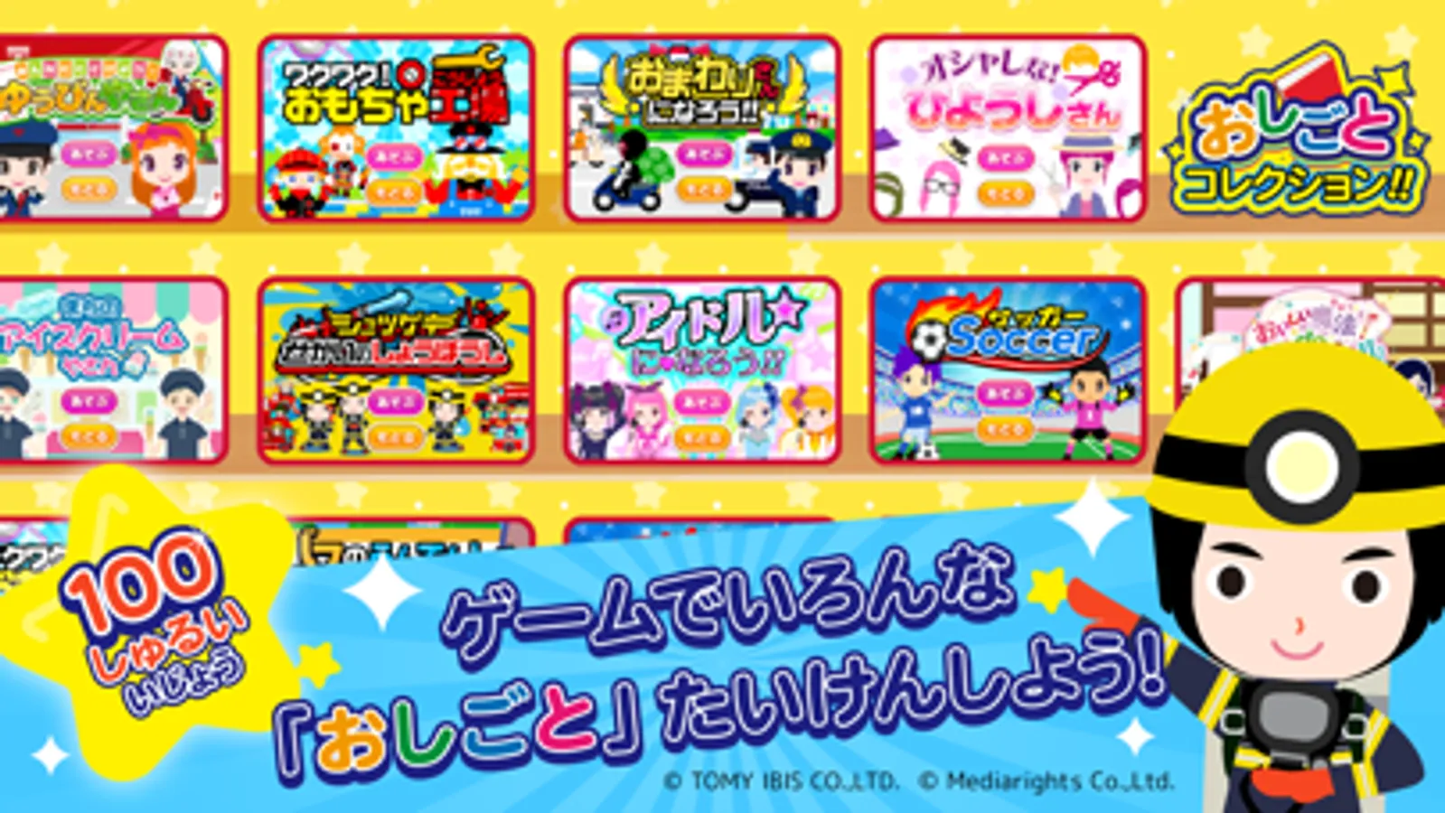 ・『おしごとゲーム』の数は常に100種類以上!『おしごと』ではたらく人になりきって遊べる楽しいアプリです。