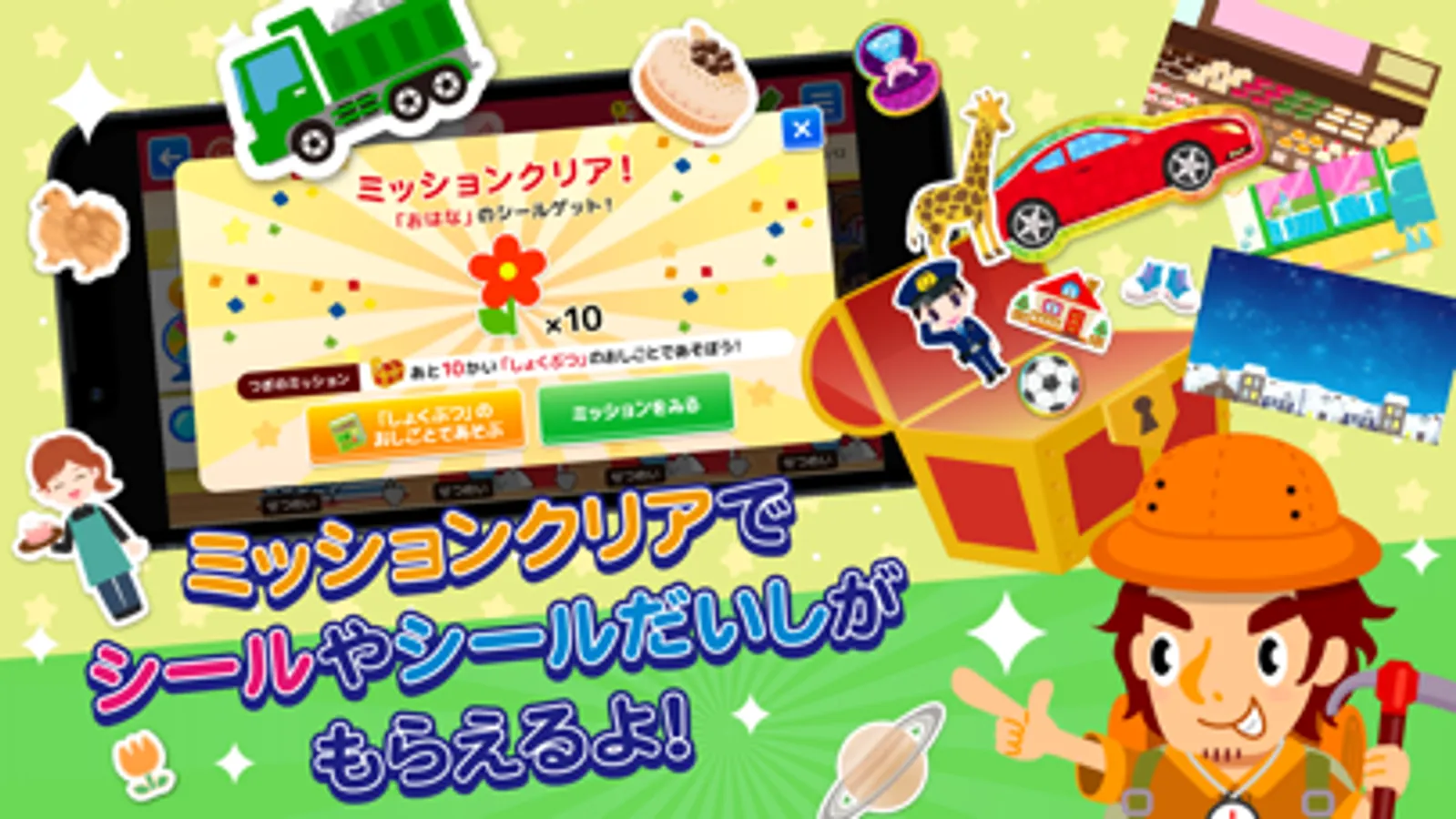 ・ゲームを遊んで『ミッション』のクリアでシールや台紙をゲットできるよ。