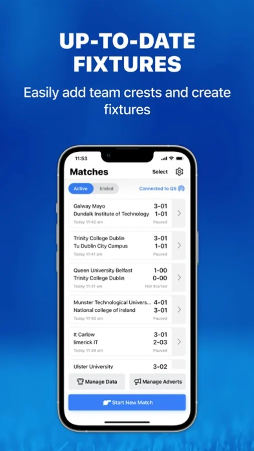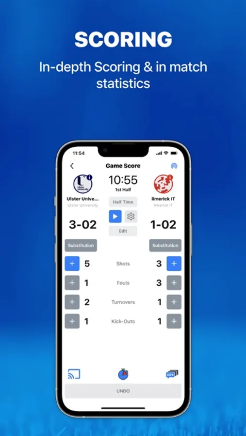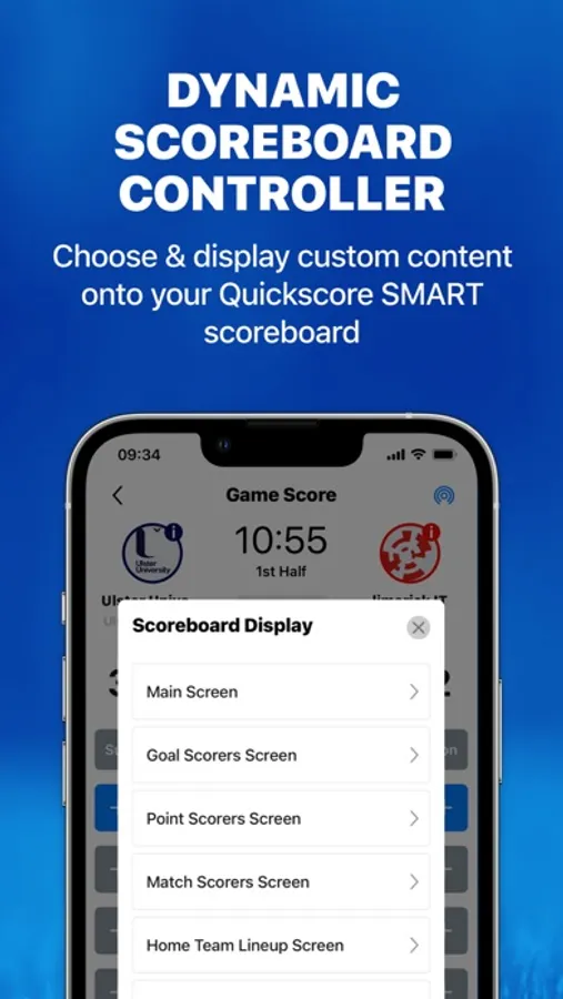 The QS Gaelic FootballScorer App is designed for Quickscore customers to use with the range of Quickscore SMART Scoreboards. The App gives users a dynamic, end-to-end solution when scoring Football matches; whereby player profiles, teams, leagues, advertising, layouts, colour schemes and general scoreboard content are all easily managed.