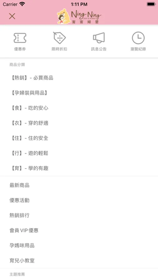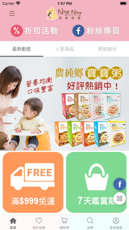 NingNing 甯甯母嬰用品,精選各式嬰兒用品,讓新手爸比媽咪可以一站式購足!從孕婦階段到新生兒、嬰幼兒上學服飾及用品,都可以買到合適的商品,尤其自己當了媽媽為了能提供給寶寶更好的,不只講求CP值還需要考慮功能、設計是否完善、安全性、材質等等,這是我們對孩子成長環境的一個堅持,希望各位媽媽也感受到我們的用心;NingNing 甯甯婦嬰幼兒服裝用品不定時推出限定優惠,APP會自動推播訊息,讓你不再錯過任何優惠活動。