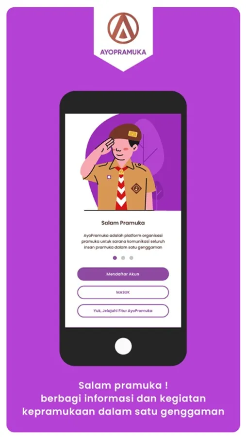 AyoPramuka adalah platform online organisasi pramuka untuk sarana komunikasi seluruh Anggota pramuka dalam satu genggaman.