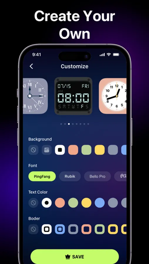 You can create your own fancy widgets with the easy-to-use widget editor. Makes your phone screen adorable! It offers various styles for you to choose from. All widgets you need are here :