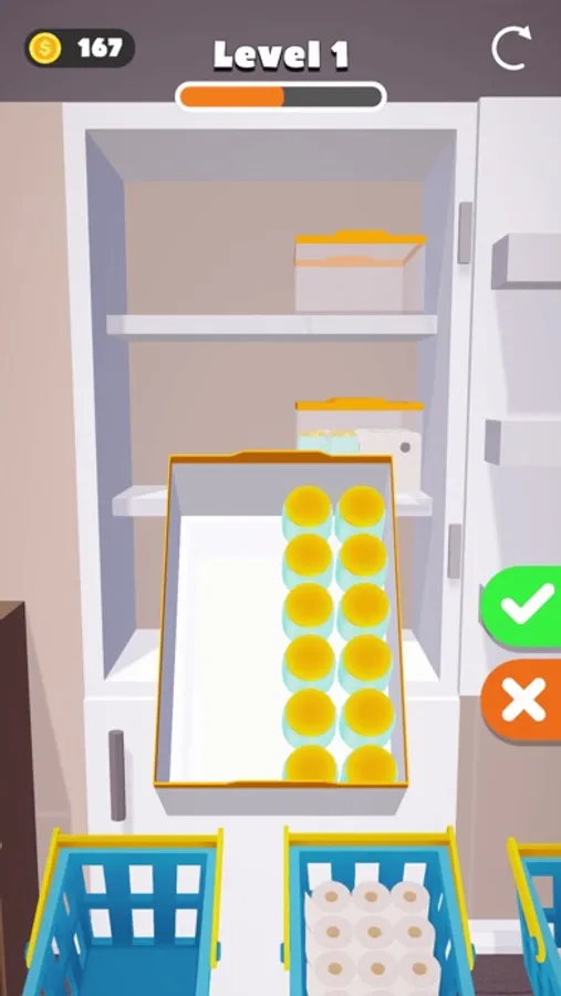 If you have completed your supermarket shopping, are you back home and ready to fill the fridge? Amazing! Start filling using different objects, groceries, beverages and many more items in fridge shelves and try to fit them all. Empty your shopping baskets one by one, find perfect spots to sort and fridge restock to play however you like!