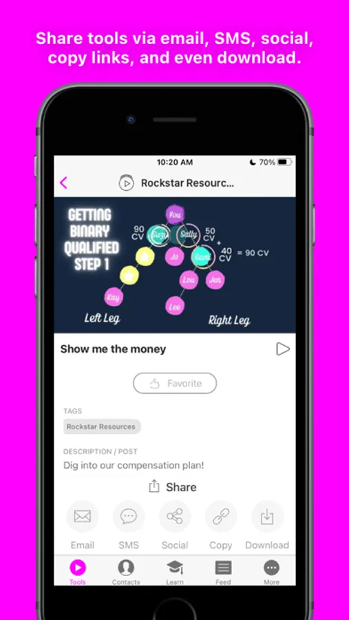 Tools: It has never been easier to share information about your products and opportunity via SMS text, email, or social media. Simply choose tools specifically designed to promote your business and share them with a contact. You’ll receive a notification when contacts view a tool so you know exactly when to follow up! You can even add your own tools. Record or upload short videos to share with prospects. You can even add actions to your videos so prospects can interact directly in the video. These smarter interactive tools are called My Media and they provide more data for follow-up with ActionAlert notifications in the Feed. No data connection? No problem! Simply download tools such as videos in the app beforehand for offline playback.