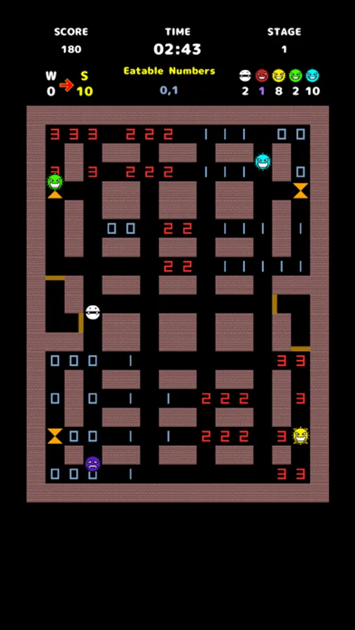 Note that not only the strength but also [Numbers that the number eater can eat] changes when the number eater or enemies touch [Hourglass] in the maze.