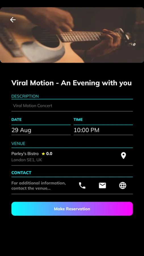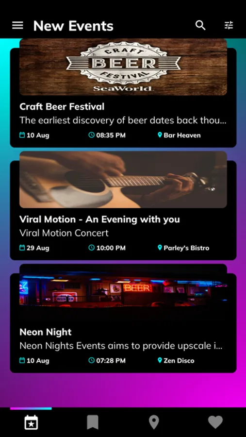 Follow a customized list of upcoming or ongoing events in many different categories. Expand to view detailed information and make reservations for you and your friends. Attend events as valued guests and supporters of local businesses, rate the organization and service and become VIP members with benefits.