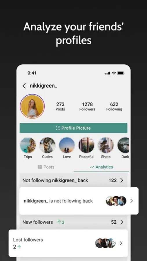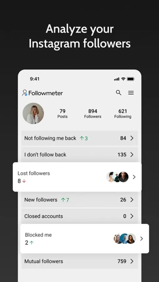 Followmeter is an Instagram followers & unfollowers tracker app. It gives you personalized follower analytics. You can also analyze your friends’ profiles with Reports. Don’t miss the following features: