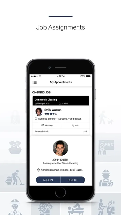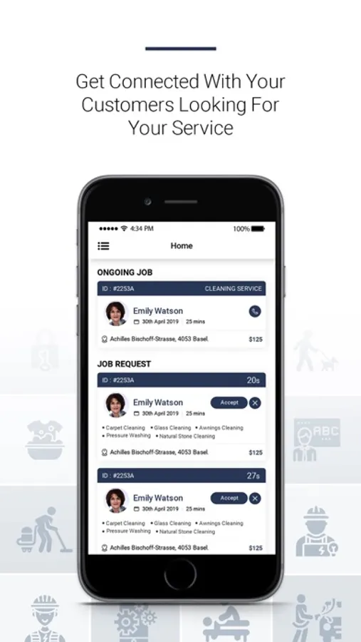 Ce service se compose de deux applications : une pour le client et une pour le prestataire de services. Le prestataire de services s'inscrit sur une application et propose un service (Hemi Pro), et le client s'inscrit sur l'autre application et trouve les services dont il a besoin (Hemi).