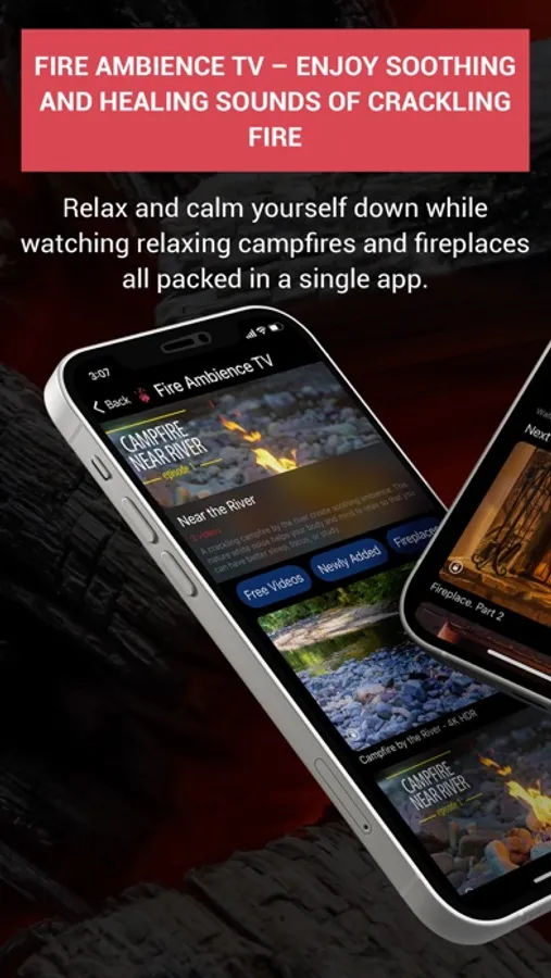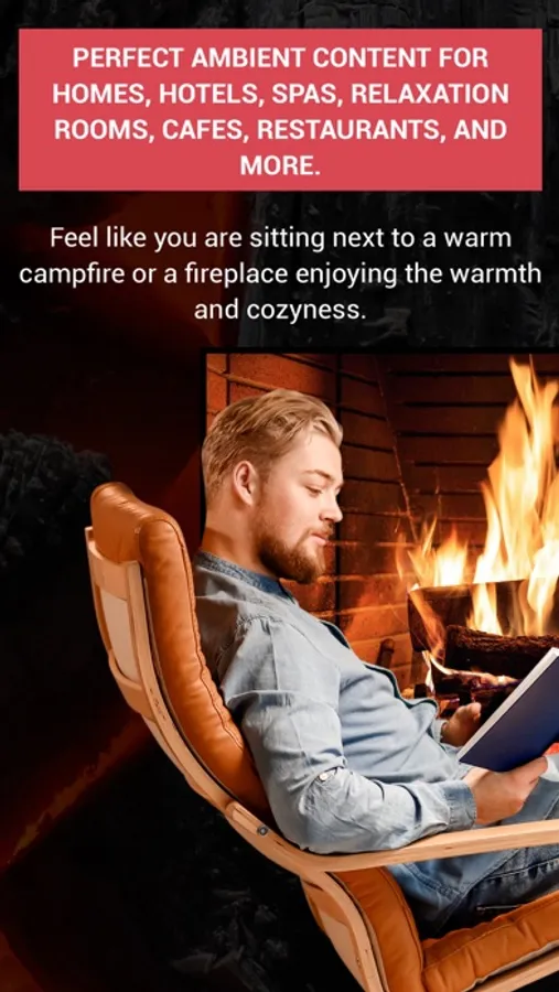 Fire Ambience TV - an amazing app for relaxation and destress with thousands of fireplace and campfire videos in 4K UHD and Full HD quality. It’s a perfect way to immerse yourself in the world of relaxation. Create imaginative and relaxing atmosphere through the crackling sounds and escape to any part of the world. Improve positive affect, experience joy and peace, lower stress level and improve mental health. Perfect for calming before falling asleep or just casually relaxing in the living room!
