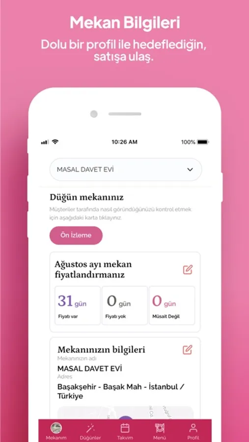 Profil sayfasıyla çiftlere firmanızı etkili bir şekilde tanıtabilirsiniz.