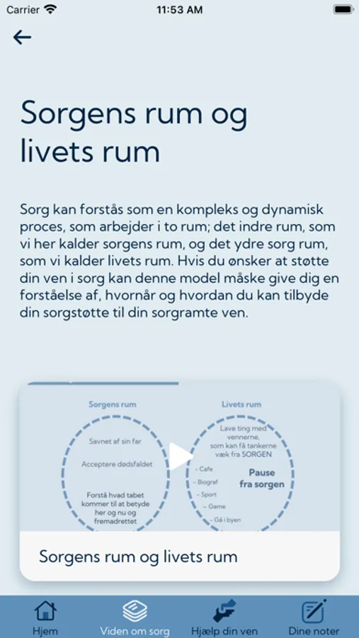 - Sorg-appen kan ikke erstatte terapeutisk og lægelig behandling, men kan fungere som en hjælp til bedre at forstå sorgens præmisser.