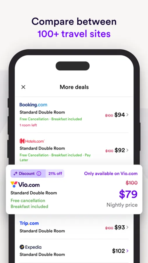 - Stay well-informed through comprehensive hotel reviews aggregated from 100+ travel platforms.