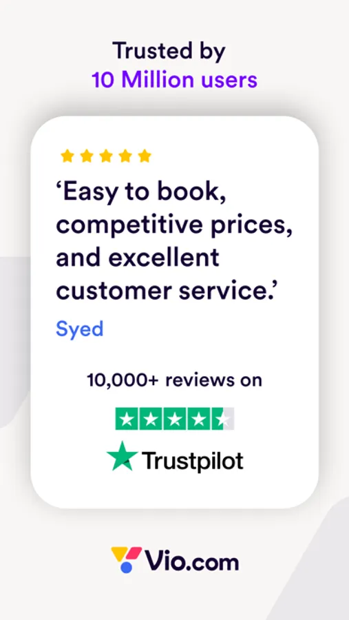 - Book accommodations with Vio.com, sporting a Trustpilot rating of 4+ stars from over 5000 reviews.