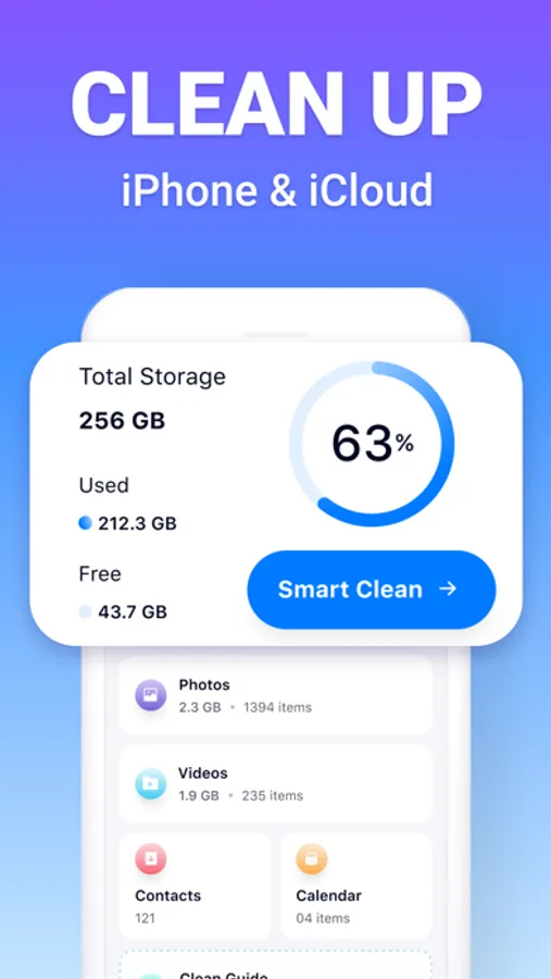 Cleaner+ provide an automatic smart cleaning that intelligently detects and clean duplicate photos, videos and free your device storage.