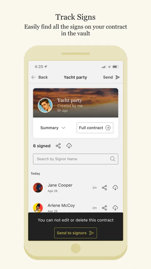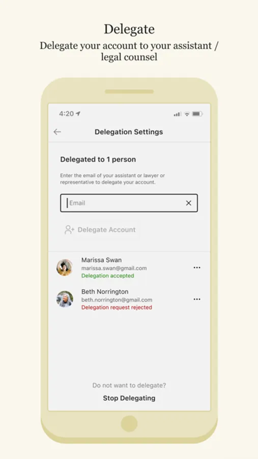 The SMPL Terms app provides more security with less friction, while also allowing you to delegate all related contract management work to one or more trusted managers, with the ability to revoke or change permission and access at any time.