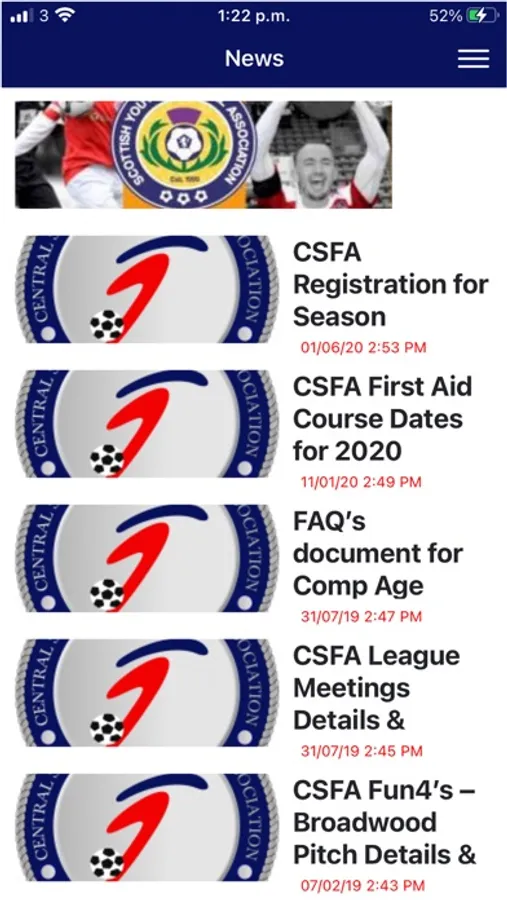 The Official Central Scotland Football Association app. Get the latest news from the league, view scores and fixtures for clubs and competitions. View competition league tables. Add clubs and competitions to your favourites for easy reference. Find directions to game venues on Online Maps.