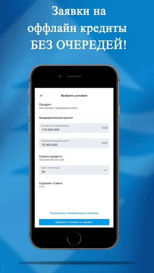 Максимальная сумма: Определяется на основание результата автоматизированного скорингового анализа. Максимальная сумма кредита составляет 30 млн. сум.