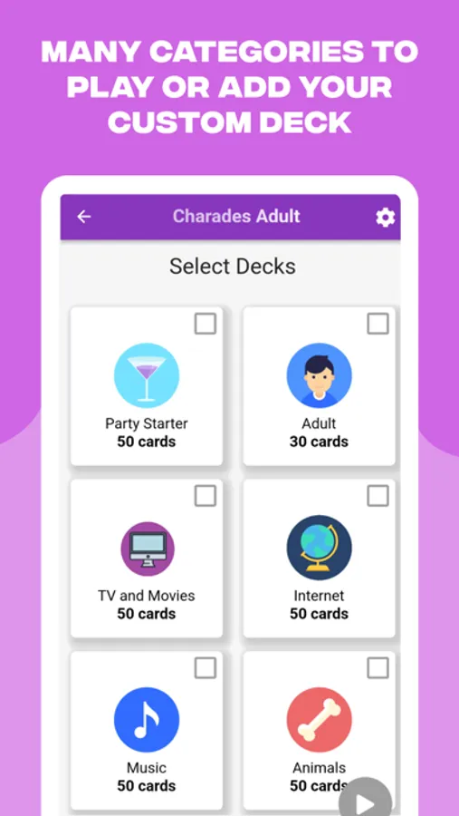 There are several suggestive decks to choose from so you will have a great variety of words to guess. Including words for adults Endless fun guaranteed