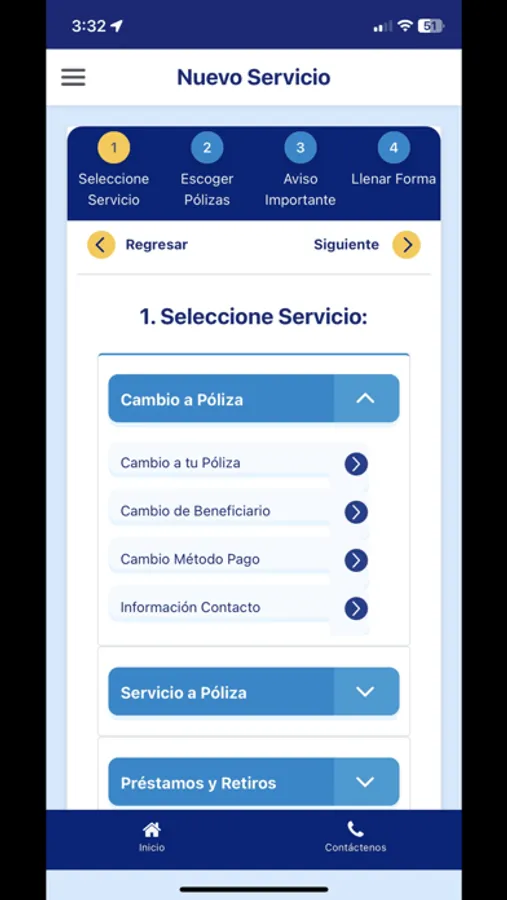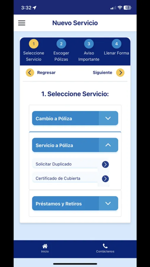 1. Consultar información de tus Pólizas, incluyendo historial de pagos, cubierta básica y suplementos, fecha de vencimiento, valores acumulados, balance de préstamo, método de pago, frecuencia de pago, notificaciones, etc.