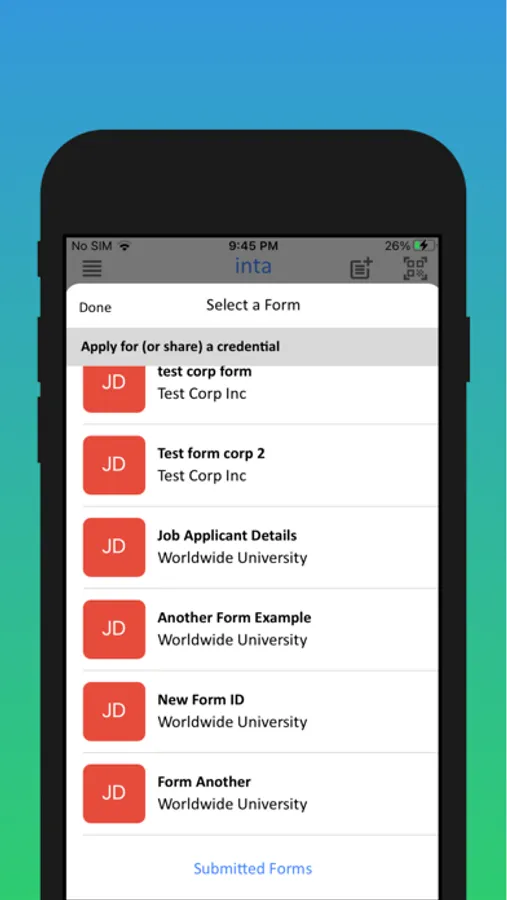 The Inta Wallet allows individuals to request, keep and share their digital credentials.