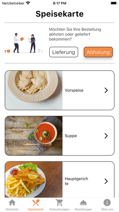 Wir liefern ofenfrische Pizza, feine Pasta, frische Salate, Fingerfood und Getränke.
