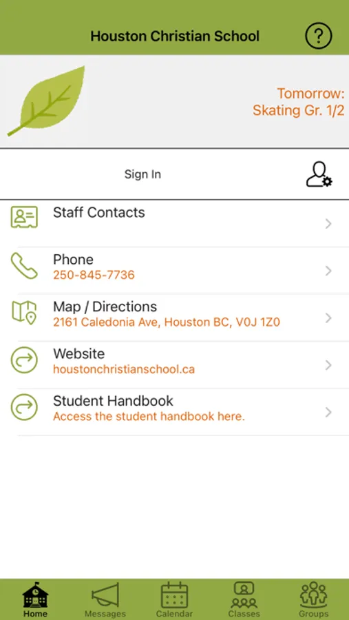 * Conveniently e-mail, phone, or navigate to the school, or reach the website or social media.